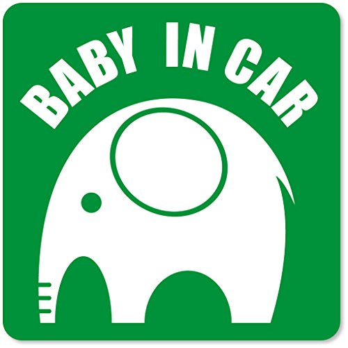 imoninn BABY in car ステッカー 【マグネットタイプ】 No.01 ゾウさん (緑色)