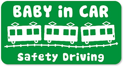 imoninn BABY in car ステッカー 【マグネットタイプ】 No.34 電車 (緑色)