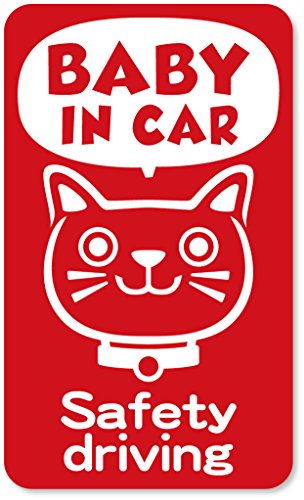 imoninn BABY in car ステッカー 【マグネットタイプ】 No.59 ネコさん2 (赤色)