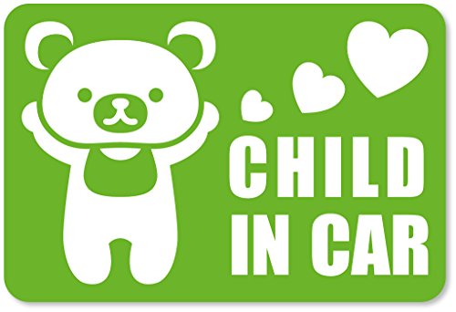 imoninn CHILD in car ステッカー 【マグネットタイプ】 No.11 クマさん (黄緑色)