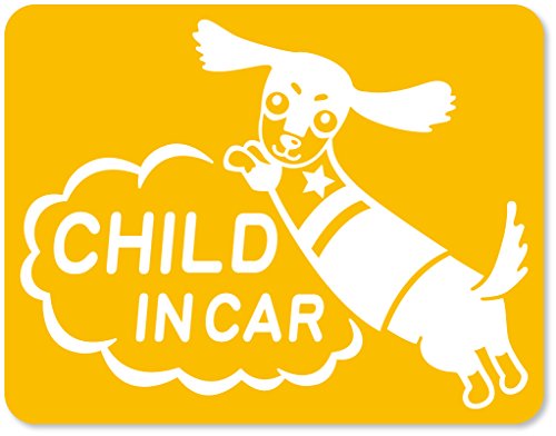 imoninn CHILD in car ステッカー 【マグネットタイプ】 No.38 ミニチュアダックスさん (黄色)