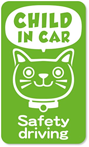 imoninn CHILD in car ステッカー 【マグネットタイプ】 No.59 ネコさん2 (黄緑色)