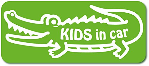 imoninn KIDS in car ステッカー 【マグネットタイプ】 No.67 ワニさん (黄緑色)