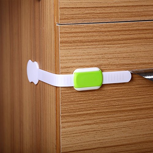 - QUALITY: The baby safety locks adjustable strap is both strong and flexible allows these locks to securely attach onto flat surfaces and around corners for baby proofing cabinets.