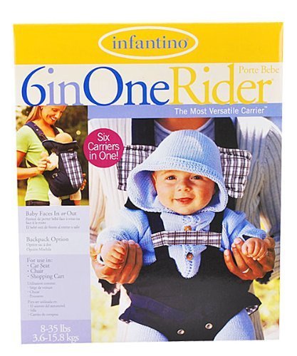 6 on One Rider the most versatile carrier., Six carriers in One., Baby faces in or out., BackPack options., For usein: carseat, chair, shopping cart.