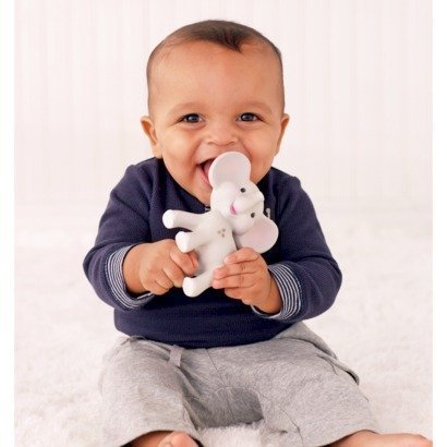 Your little one will love this Squeeze and Teeth Elephant from Infantino GaGa. This chewy, squeaky elephant is soft, flexible and easy to grab. It's made of natural, BPA-free rubber.