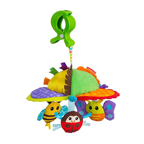 Infantino Topsy Turvy Busy Bugs Travel Mobile. This take-anywhere travel mobile entertains little busy bees with a shiny mirror, fun sounds and flying friends that encourage reaching and batting. The secure-grip clip easily attaches to car seats, activity gyms and stroller canopies.