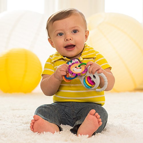Babies will love this link-on elephant with its peek-and-see mirror and textured activity tags. Four multi-textured tags encourage sensory and tactile discovery while three spinning rings help keep little hands engaged and interested. Use the flexible trunk to quickly link this toy to your diaper bag or stroller.