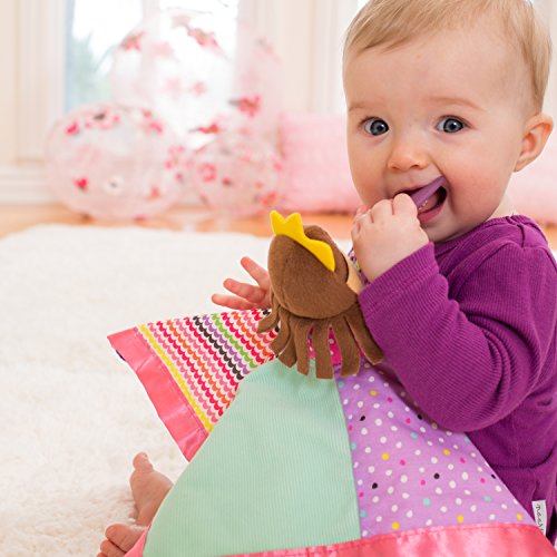 Age grade 0 months+;Plush, soft fabric lovie;Satin accents and patchwork prints;Knotty corner for teething or tugging;Jewel-shaped BPA-Free teether.
