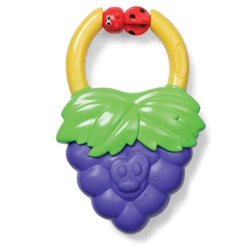 Handle designed for little hands.,Easy spin rattle.,Gentle vibrations begin when grapes are bitten.