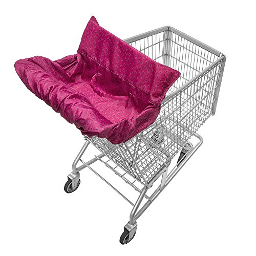 Full coverage design provides maximum germ protection;Folds up extra small into attached pocket, will easily fit in a purse or diaper bag;Stays securely in place with elastic trim and hook and loop fasteners;Includes adjustable safety belt;Perfect for shopping carts and high chairs