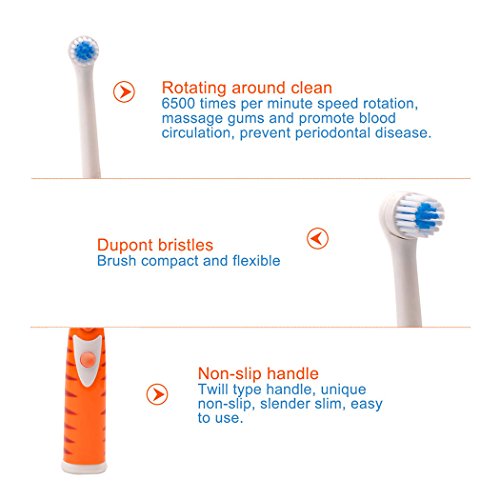 (inkint)電動歯ブラシ 子供用 かわいいキャラクター ミニサイズ 交換用ブラシ付 操作簡単 虎さんブラシ かわいい 歯ぐきを傷つけない オレンジ