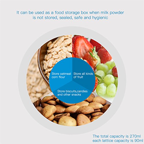 - 1間仕切りに90mlの粉ミルクを収容できます、3間仕切り、使い便利です。サイズが小さくて大容量。