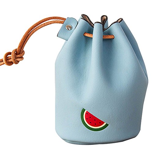 Ishow 小銭入れ レディース 小さなバケツ形 可愛い果物の模様 巾着タイプ 巾着袋 小銭財布 小さい財布 小財布 手のり財布 カード コイン入れ 札入れ 小銭 鍵 コンパクト用 子供用 5色入荷 (スイカ)