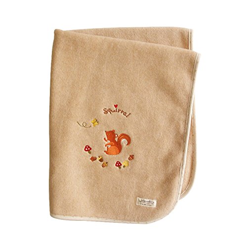 - リスのかわいい刺繍入りブランケット