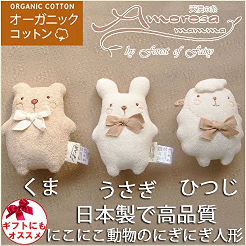 日本製 オーガニックコットン にこにこ動物のにぎにぎ人形 鈴入り!アモローサマンマ amorosa mamma!ベビー 新生児用 おもちゃ ぬいぐるみ ファーストトイ ニギニギ (ひつじ)