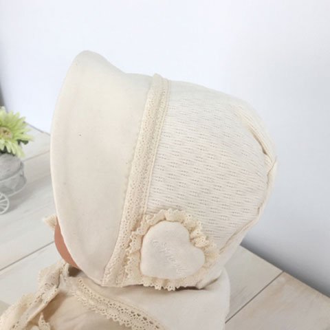 - レースもリボンも全てオーガニックコットン お帽子は上品なデザインでマジックテープが付いています