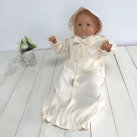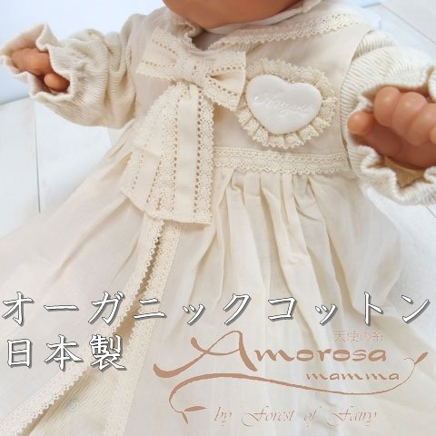 オーガニックコットン100%を使用して、安心安全の日本製。自然そのままの色と風合いが優しい雰囲気を演出してくれます。すべて生地縫製ともに高品質な日本製♪着用期間は新生児から6ヶ月を目安にお考えください。上品なデザインで、お出かけ用やお披露目用にも活躍してくれますよ ご注文いただいた即日の発送が可能!送料・代引き手数料が無料!! ヤマト運輸でお届け。