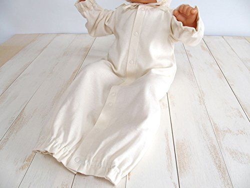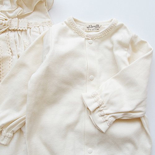 オーガニックコットン100%を使用して、安心安全の日本製。自然そのままの色と風合いが優しい雰囲気を演出してくれます。すべて生地縫製ともに高品質な日本製♪着用期間は新生児から9ヶ月を目安にお考えください。上品なデザインで、お出かけ用やお披露目用にも活躍してくれますよ ご注文いただいた即日の発送が可能!送料・代引き手数料が無料!! ヤマト運輸でお届け。