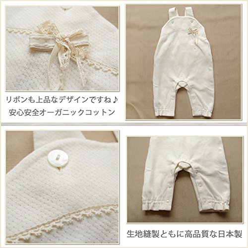 オーガニックコットン リボンフリフリのサロペット 新生児 赤ちゃん ベビー サイズ 70cm