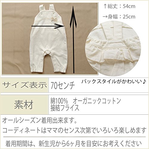 リボンフリフリサロペット!赤ちゃんの肌に優しいオーガニックコットン。安心安全日本製で高品質なベビー服です。着用期間は新生児から6ヶ月を目安にお考えください。細部までこだわった繊細なデザイン。アモローサマンマ。お宮参りや退院時、お披露目などにもおすすめ。フォーマル。出産祝いなどのギフトにもどうぞ。男の子 女の子にもおすすめのデザインです。サイズ70センチ。