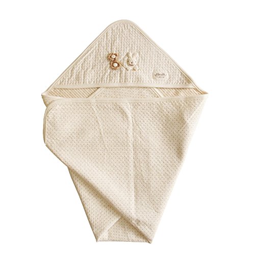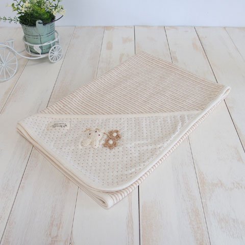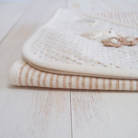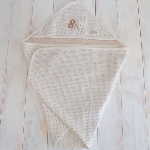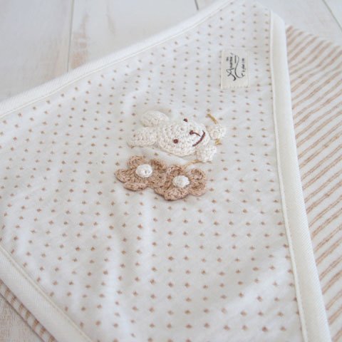 日本製 オーガニックコットン うさぎモチーフ ドットボーダーのアフガン おくるみ!アモローサマンマ Amorosa mamma
