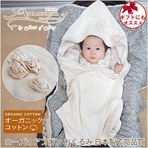 日本製 オーガニックコットン ローズのアフガン おくるみ!アモローサマンマ Amorosa mamma