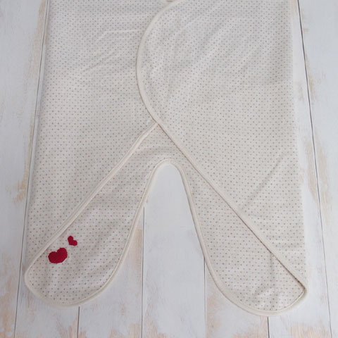 - 赤ちゃんをくるんであげる時、画像のようなフード部分がございます。