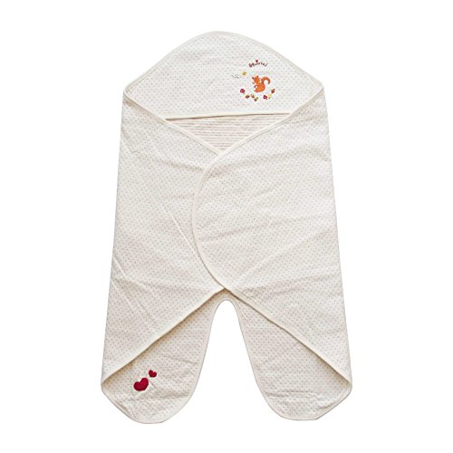 - オーガニックコットン リスの足つきアフガン おくるみ!