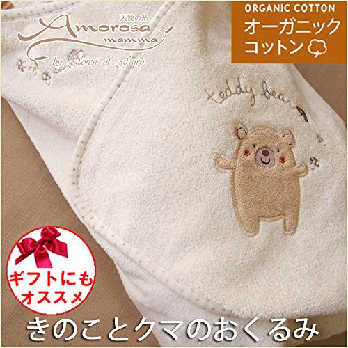 日本製 オーガニックコットン きのことくまのアフガン おくるみ アモローサマンマ