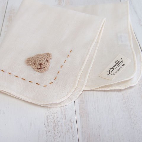 日本製 オーガニックコットン うさぎ手編みモチーフ ガーゼハンカチ Amorosa mamma アモローサマンマ