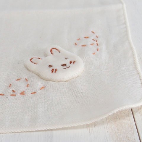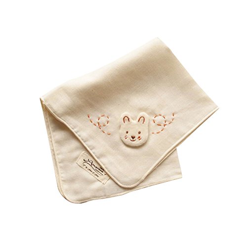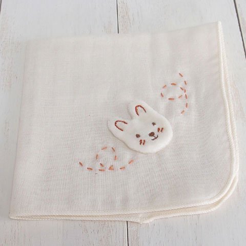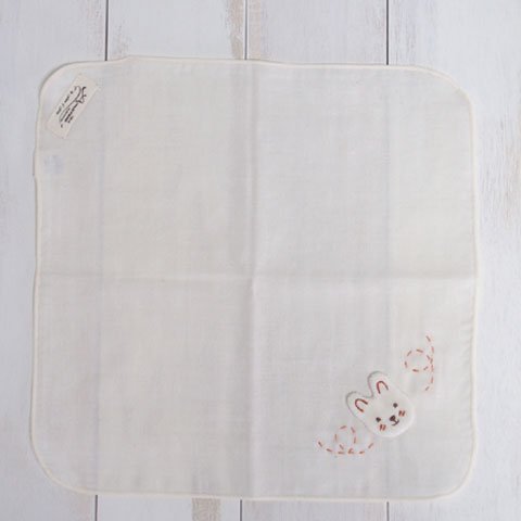 日本製 オーガニックコットン ウサギモチーフ ガーゼハンカチ Amorosa mamma アモローサマンマ