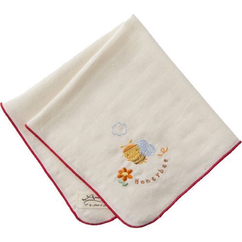 - ミツバチのかわいい刺繍入りガーゼハンカチ