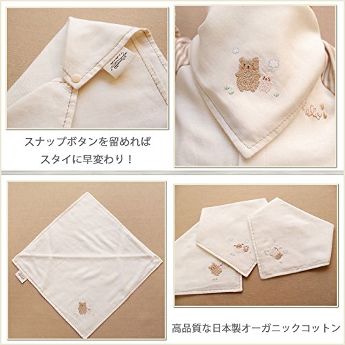 日本製 オーガニックコットン にこにこ動物 ガーゼハンカチ スタイ よだれかけ 男の子 新生児 赤ちゃん用 アモローサマンマ Amorosa mamma (くま)