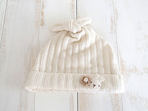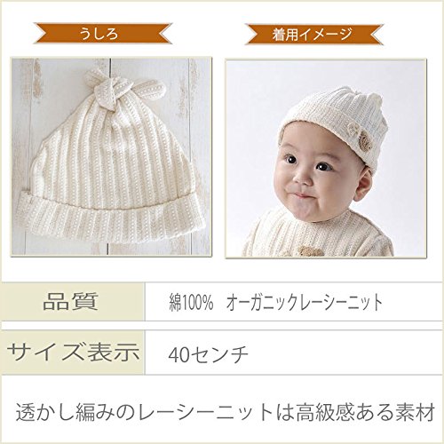 - 新生児赤ちゃんのオーガニックコットン レーシーニットのお帽子
