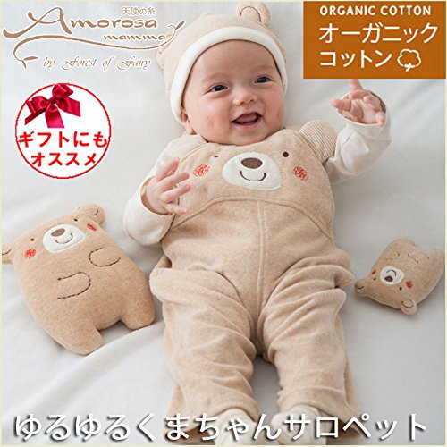 オーガニックコットン ゆるくまちゃん サロペット セレモニー 新生児 赤ちゃん ベビー ご出産祝い 御祝などにも 男の子 女の子 80cm