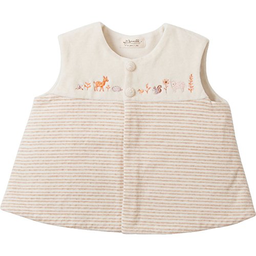 日本製 オーガニックコットン 小さな森の動物 新生児 赤ちゃん用 あったかベスト 70cm 男の子 女の子にも 秋 冬 ベビー服 (ボーダー)