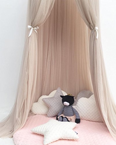 Iwotou モスキートネット 蚊帳 ベッド天蓋 キッズテント キッズ用寝具 遊び お子さまへの読み聞かせ ラウンドレースドーム型ネットカーテン、ベビー 男の子と女の子 ゲームハウス 11.8 x 11.8 x 2.7 Inch ベージュ