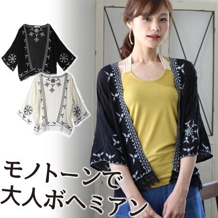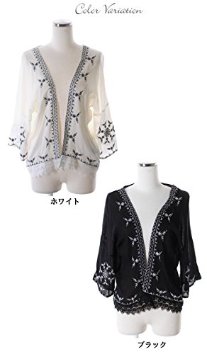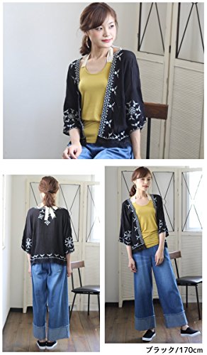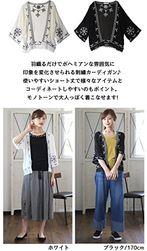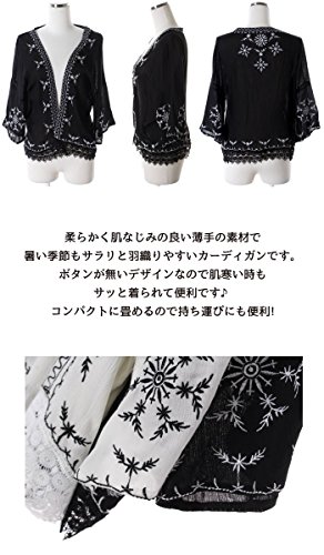 - 【エスニックな刺繍入り!】大胆に施された刺繍がエスニックな雰囲気のショート丈カーディガンが登場!前開きのガウン風で羽織り やすいカーデは夏にピッタリの薄手のサラサラ素材です。ドロップショルダーやドルマンスリーブ(ドルマン袖)で二の腕カバーもでき、ゆったりラクチンなシルエットで涼しい着用感。
