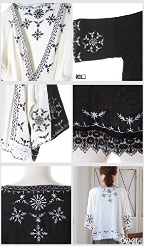 [表記サイズ]【Mサイズ】バスト79〜87 身長154〜162[実寸サイズ]袖丈 (襟ぐりから)約46cm アームホール約50cm 袖口約44cm 着丈約55cm 襟ぐりの幅約22cm[カラー]ホワイト(白)/ブラック(黒)[素材]【基布】レーヨン100% 【刺繍糸】ポリエステル100%(ザラつきのある薄手の素材)