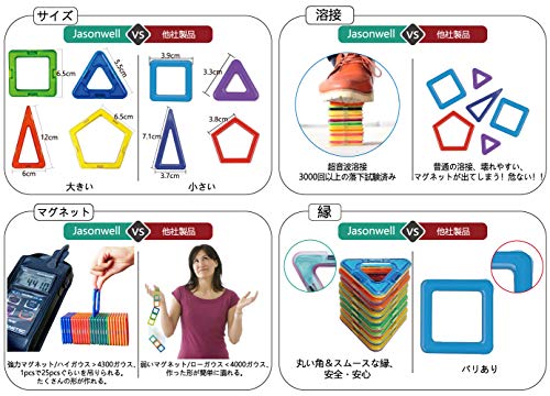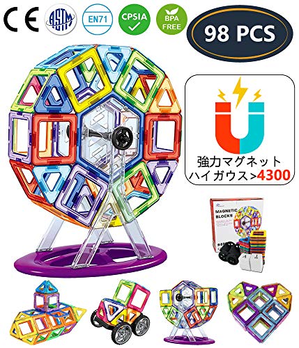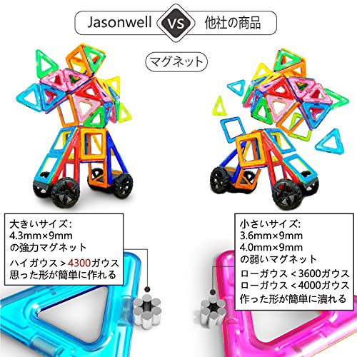 Jasonwellマグフォーマー マグネットブロック おもちゃ 98ピース 知育玩具 キーズ 女の子 男の子 子供 磁石玩具 積み木 (98pcs)