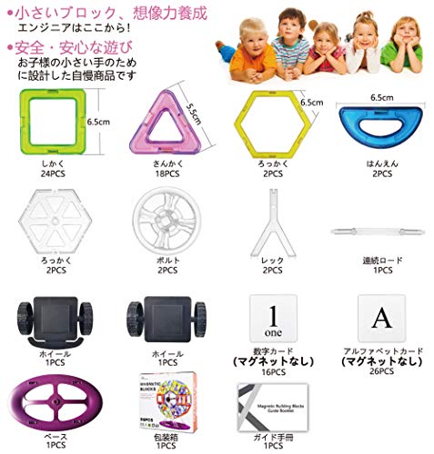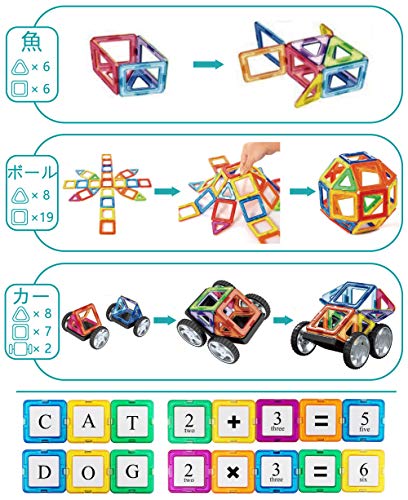 - 『遊びを通して想像力を育くむ』プラスチック各辺の中央には強磁性の マグネットが内蔵されていて360度回転させて 接続することができますので、幼児や小学生の 子供にクリエイティブな思考を与え、簡単に思い通りの図形を作成できます。