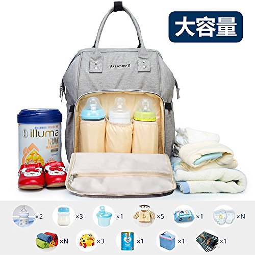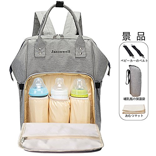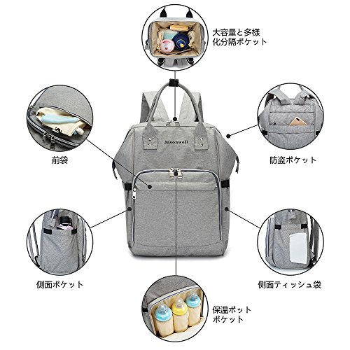 Jasonwellマザーズバッグママバッグリュックハンドバッグおしゃれ多機能大容量シンプル防水大容量軽量ベビー用品収納ママバッグ出産準備出産祝い良いデザイン (グレー)