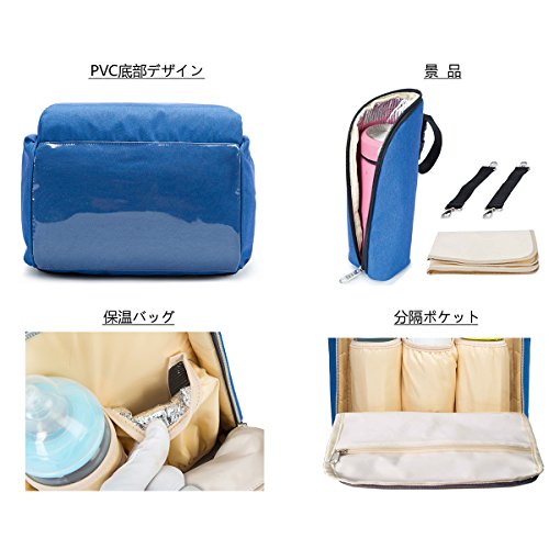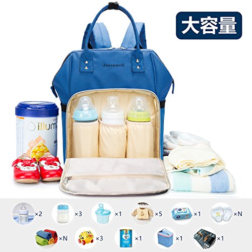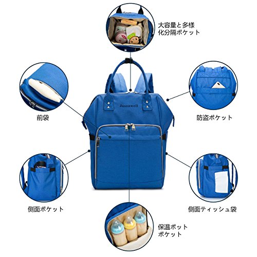 Jasonwellマザーズバッグママバッグリュックハンドバッグおしゃれ多機能大容量シンプル防水大容量軽量ベビー用品収納ママバッグ出産準備出産祝い良いデザイン (ブル—)