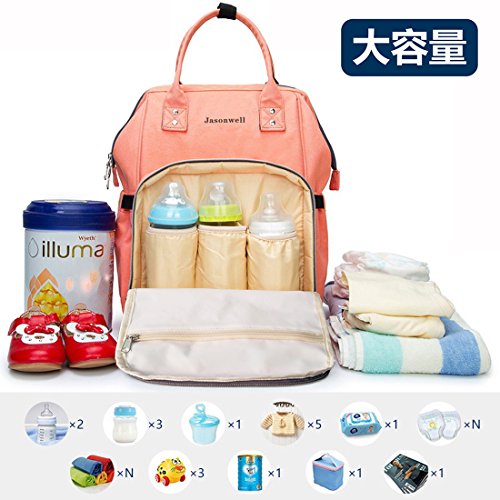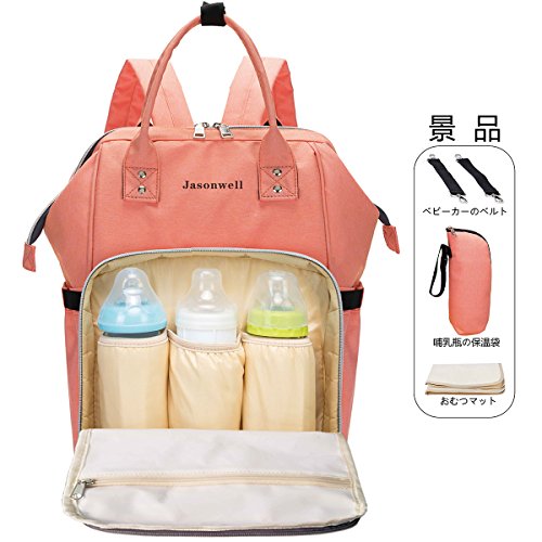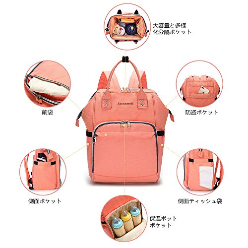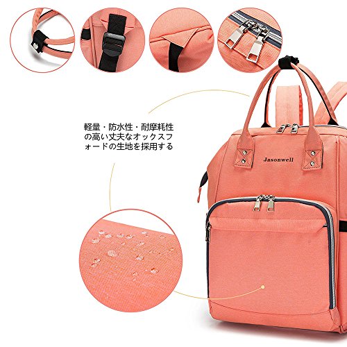 Jasonwellマザーズバッグママバッグリュックハンドバッグおしゃれ多機能大容量シンプル防水大容量軽量ベビー用品収納ママバッグ出産準備出産祝い良いデザイン (ピンク)