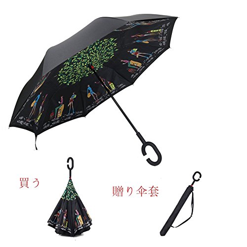 逆傘jiazugo児童成人層に手にしたC形面、強大な防水防風と紫外線UV、傘、日傘(長80cm、贈る伞套) (80cm, 草グリーン)