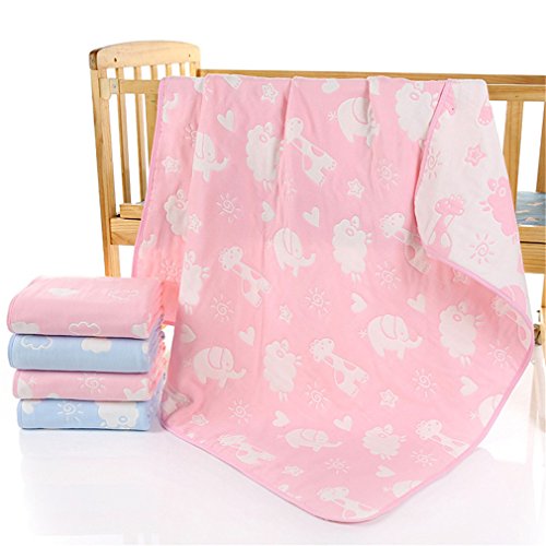 6重布盖毯 ガーゼケット ベビーケット オーガニックコットン 出産祝いに 動物 ピンク