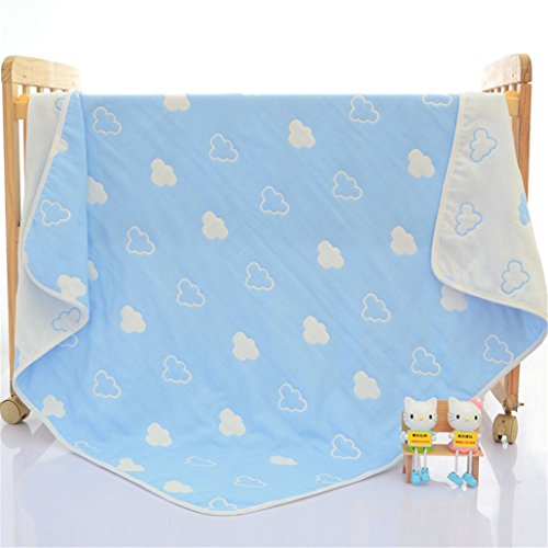 タオルケット 子供用/ベビー用 6重ガーゼケット 柔らかい肌触り 綿100% お昼寝ケット ブランケット110×110CM ブルー