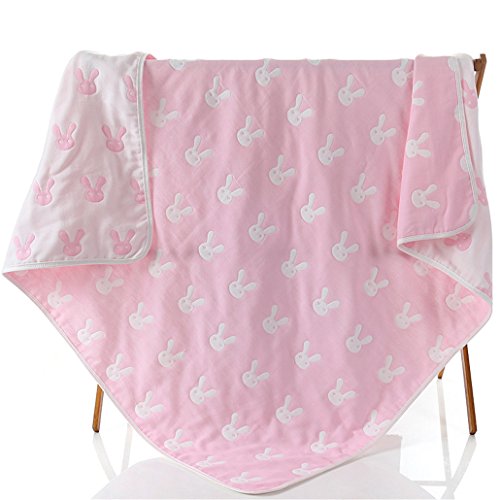 4重赤ちゃんおくるみ ガーゼケット 入浴用 ふわふわ暖かい 無添加 夏 秋 冬 綿100% ガーゼタオル ラビット ピンク