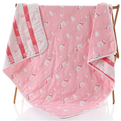 ベビーブランケット ベビー タオルケット 100%綿 安心 お昼寝 優しい肌触り 110×110cm ホッキョクグマ柄 ピンク